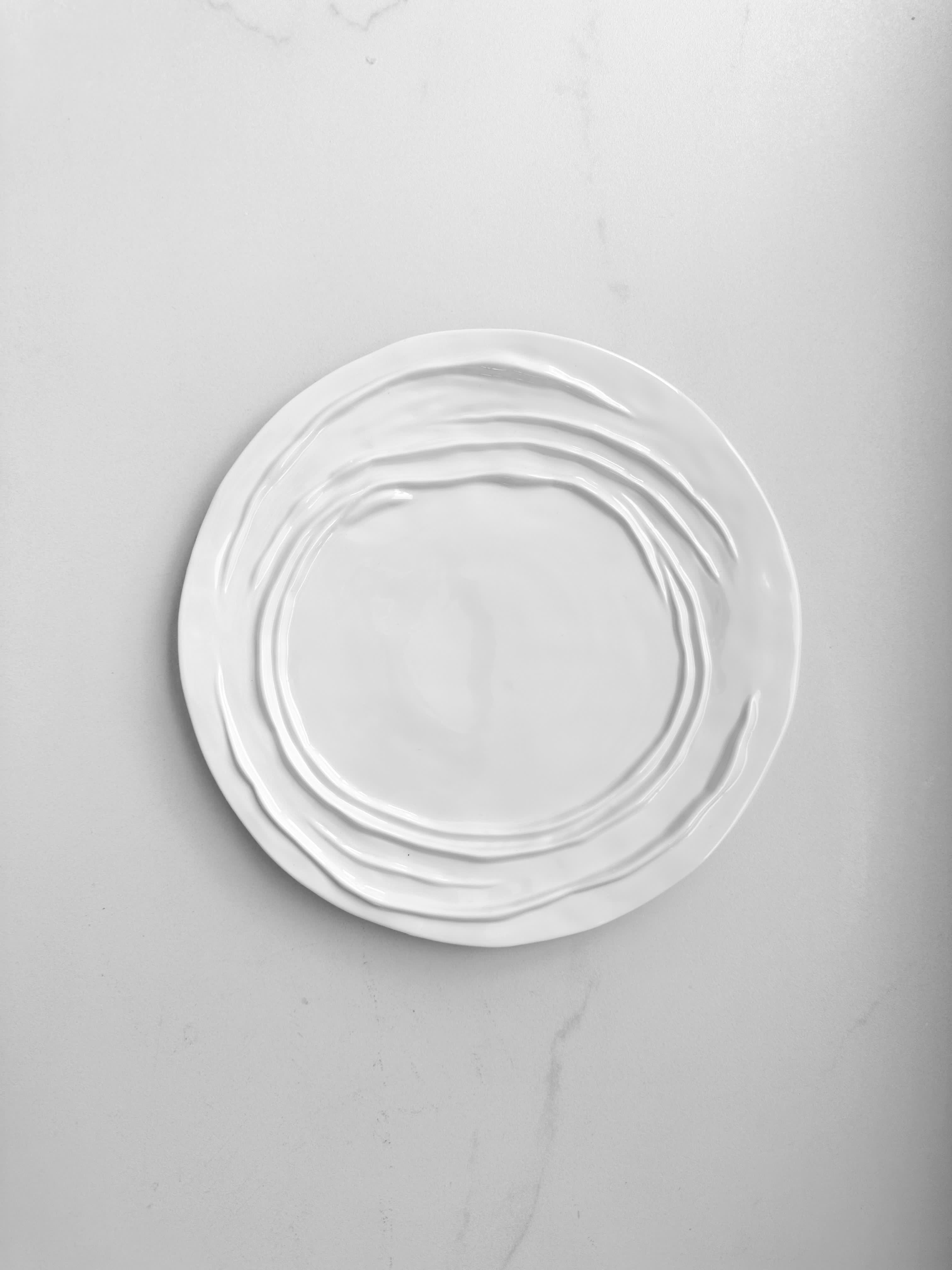 Stylish ceramic flat plate featuring a creative irregular texture and modern design. Perfect for serving appetizers, desserts, or main dishes with a unique flair. Durable, elegant, and ideal for everyday or special occasions.