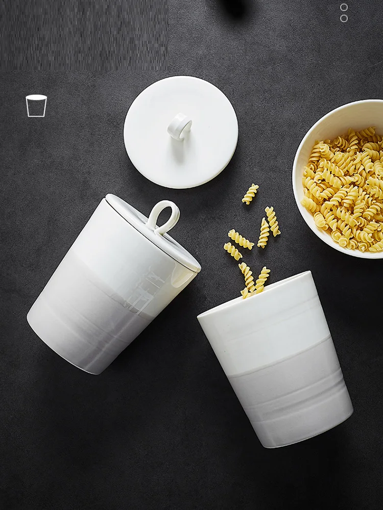 European-style white ceramic jar with a sealed lid, perfect for storing candy, tea, coffee, and more. Combines elegant design with practical kitchen storage. Ideal as a home decoration or thoughtful gift.